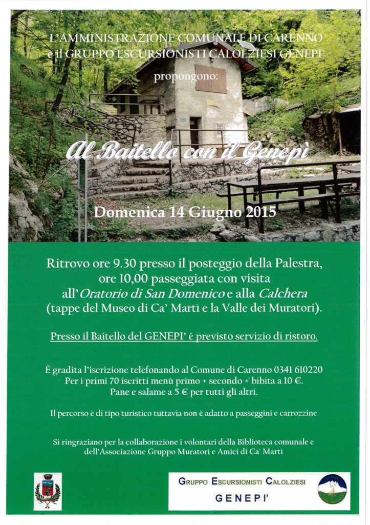 CARENNO – Iniziativa organizzata dall’Amministrazione Comunale di Carenno in collaborazione con il Genepì i volontari della biblioteca e dell’associazione Amici di Cà Martì per domenica 14 giugno.