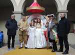 I regnanti sono arrivati in Comune a bordo di una carrozza trainata da un cavallo bianco, scortati dal Gran Ciambellano (Gianmario Sacchi) e da una bellissima damigella. Ad accompagnare il corteo la Banda Giuseppe Verdi di Lecco.