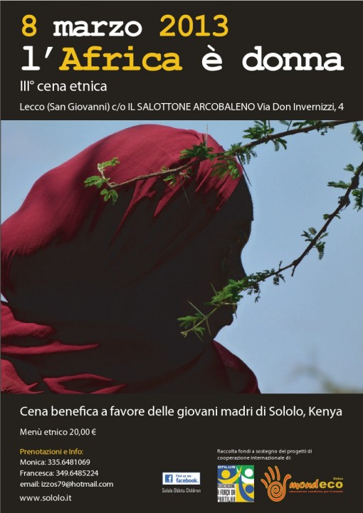 LECCO – Torna anche quest’anno la cena etnica, giunta alla terza edizione, in occasione della festa della donna dell’8 marzo, il  cui ricavato andrà a sostegno del Progetto Obbitu Children Village in Kenya. Location dell’evento il Salottone Arcobaleno, di via don Invernizzi, nel rione di San Giovanni a Lecco con inizio alle 20. Costo di partecipazione 20 euro. Sarà un menù rispettoso e degno di un venerdì di Quaresima a base di verdure e piatto forte cous cous di pesce.