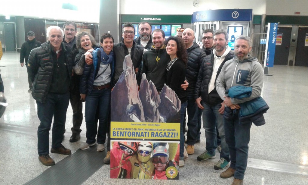 LECCO – Sono atterrati pochi minuti fa Manuele Panzeri e Giovanni Giarletta. I due alpinisti lecchesi, volontari del Soccorso Alpino, sono tornati dalla Patagonia dopo aver salito, insieme al varesino Tommaso Sebastiano Lamantia (già rientrato in Italia nei giorni scorsi),  il Cerro Torre per la  “mitica” via dei Ragni.