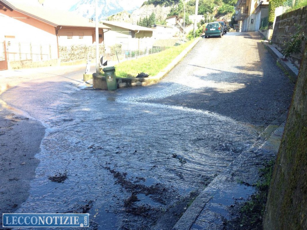 LECCO – Un tubo di connessione troppo piccolo per reggere i volumi d’acqua che, soprattutto dopo le precipitazioni delle ultime settimane, scendono verso valle: questa sarebbe la causa del “fiume” che si crea in via ai Mulini, nel rione di Chiuso, in caso di pioggia e che “scorre” giù per il viale verso corso Bergamo.