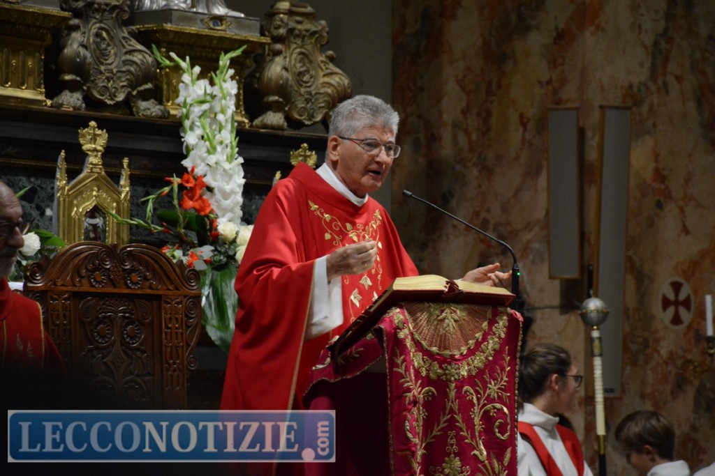 LECCO – “Undici anni con voi. Mi avete fatto emozionare!”. Mons Franco Cecchin non ha trattenuto la commozione davanti ad una basilica gremita, domenica mattina, per quella è stata la sua ultima celebrazione come prevosto di Lecco.