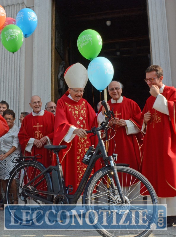 Il regalo vero, però, ha atteso mons. Cecchin all’uscita dalla Basilica: una nuovissima E-bike a pedalata assistita per lui che, in questi anni, ha girato in lungo e in largo la città in sella alla sua bici.