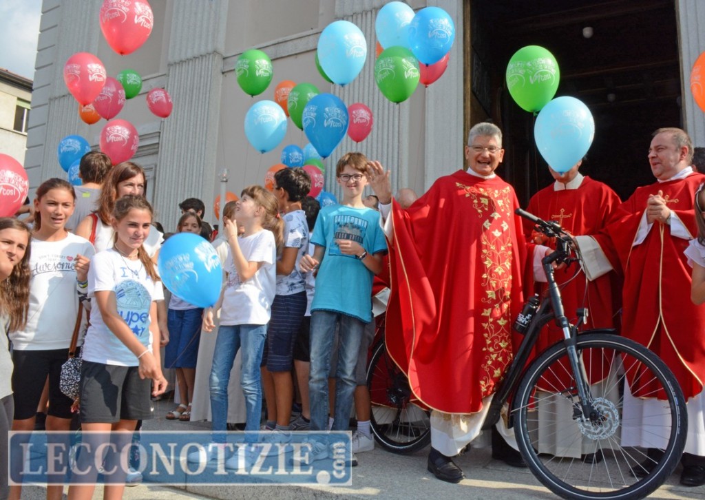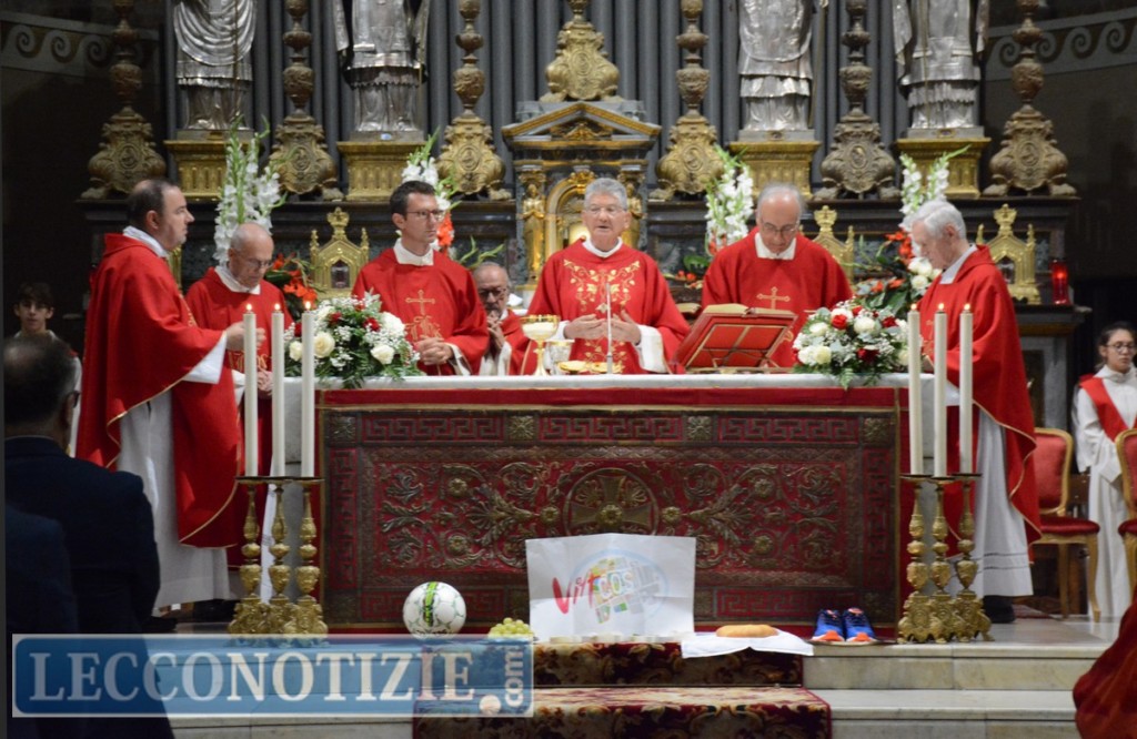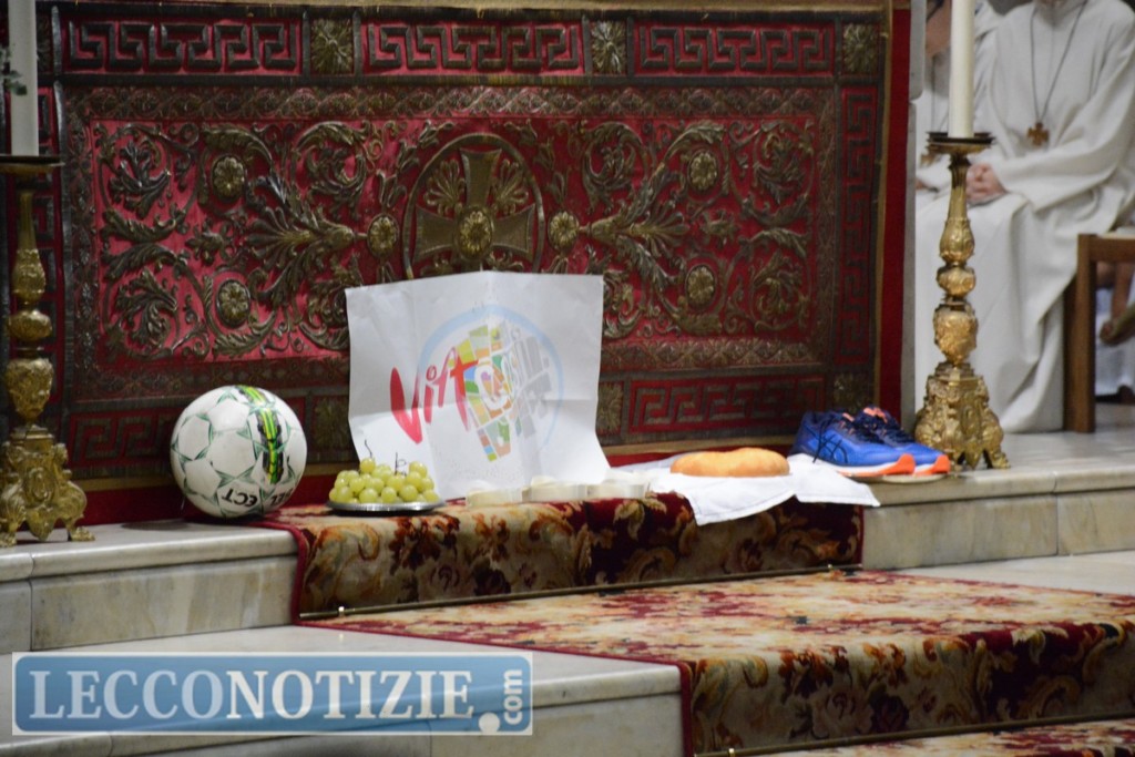 Un pallone da calcio, un grappolo d’uva, un panino e delle scarpe sportive sono i doni simbolici che i ragazzi dell’oratorio hanno posto dinnanzi all’altare in una giornata che ha coinciso anche con la preghiera dell’avvio del catechismo, un momento che ha visto partecipare i referenti delle parrocchie lecchesi.