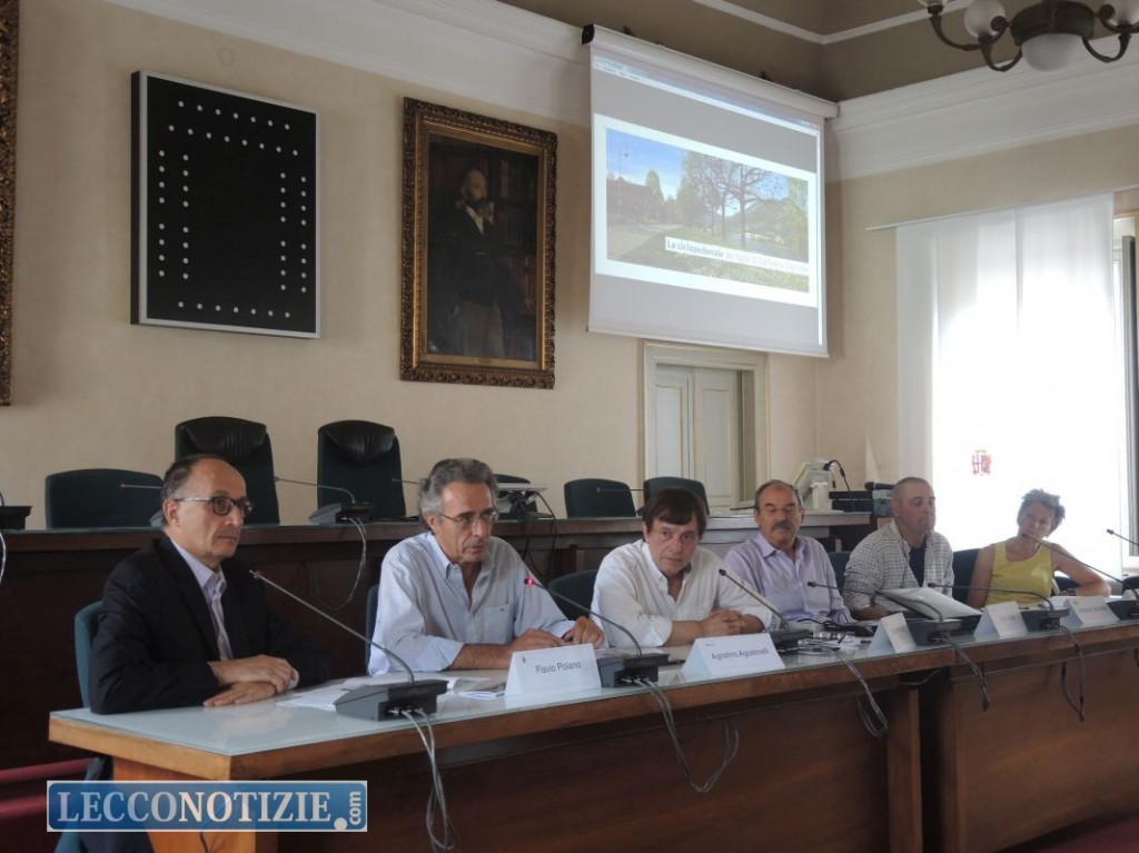 Il lavoro è frutto dell’impegno della Federazione Italiana Amici della Bicicletta con il patrocinio dell’assessorato alla Mobilità del Comune di Lecco – rappresentato dall’ex assessore Vittorio Campione – e del presidente del Parco Adda Nord Agostino Agostinelli: “L’idea – ha spiegato Lodovico Cameroni, presidente Fiab-Lecco Ciclabile – è nata nel 2012 in occasione della presentazione dei lavori di recupero dell’ex ponte ferroviario del Lavello a Calolziocorte. Questa guida vuole essere il riconoscimento e la valorizzazione di un percorso ciclo-pedonale ad anello di particolare bellezza ed interesse sia storico che naturalistico”.