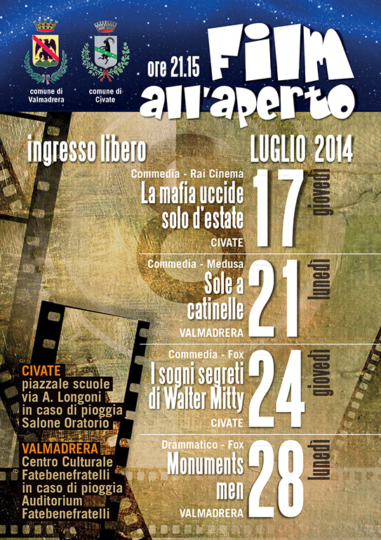 VALMADRERA/CIVATE – Quattro appuntamenti al cinema davvero speciali quelli organizzati dal Comune di Valmadrera in collaborazione col Comune di Civate nell’ambito dell’iniziativa “Estate Giovani”: le proiezioni infatti avverranno all’aperto, presso il Centro Culturale Fatebenefratelli nel caso di Valmadrera, in corrispondenza del piazzale scuole in Via A.Longoni invece nel caso di Civate.