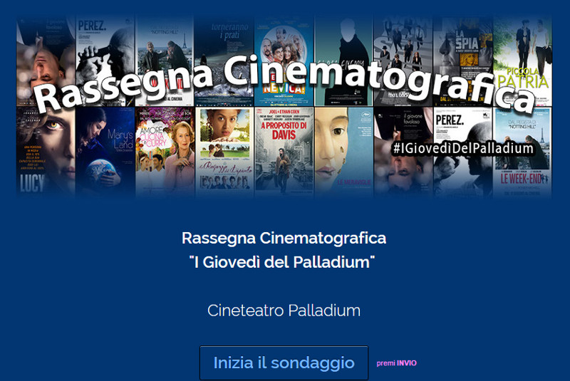 “Con pochi clic sarà possibile esprimere suggerimenti, critiche e apprezzamenti sui film proiettati e indicare anche preferenze sui film che si vorrebbe venissero proiettati nella prossima rassegna – spiega Paolo Parravicini che cura il sito, la comunicazione sui social e il sondaggio – Come si fa? Basta andare sul sito www.cinemapalladium.com, cliccare sul link ‘sondaggio’ ed il gioco è fatto. Con l’occasione ci si potrà anche iscrivere alla newsletter del Palladium che consente di essere sempre informati sulla programmazione della sala”.