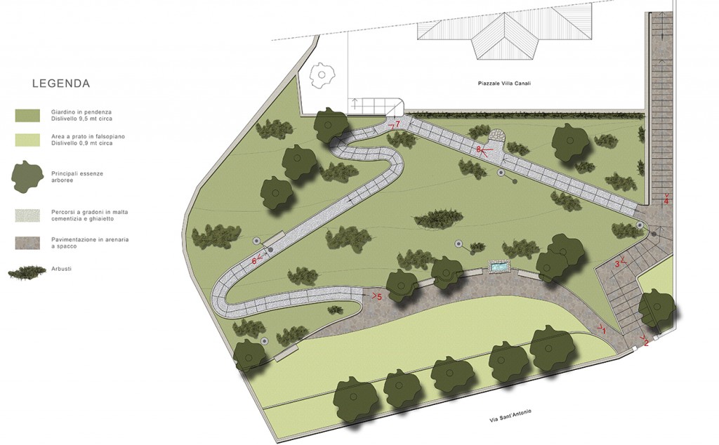 “Verranno rimessi a nuovi i percorsi pedonali, ci sarà una cura particolare del verde, anche la scala che collega il parco a Villa Canali verrà sistemata, insieme alla piazzola e la fontanella” spiega il sindaco Baldassarre Mauri.