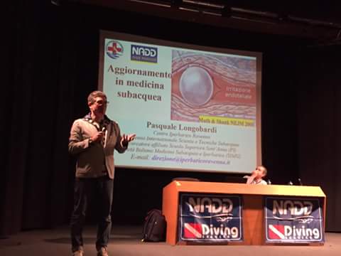Il dottor Pasquale Longobardi ha presentato i fattori di rischio per incidente subacqueo sia immodificabili , età e genetica, che modificabili come pressione arteriosa, colesterolemia, fumo, forma fisica. Risulta che le immersioni sono estremamente sicure(un incidente ogni 10.000 immersioni) qualora lo stile di vita del subacqueo sia salutare per regolarità nell’attività fisica e corretta alimentazione. Gli attuali strumenti per il calcolo della decompressione e l’accuratezza della formazione dei subacquei rendono questo sport sicuro e fruibile da tutti.