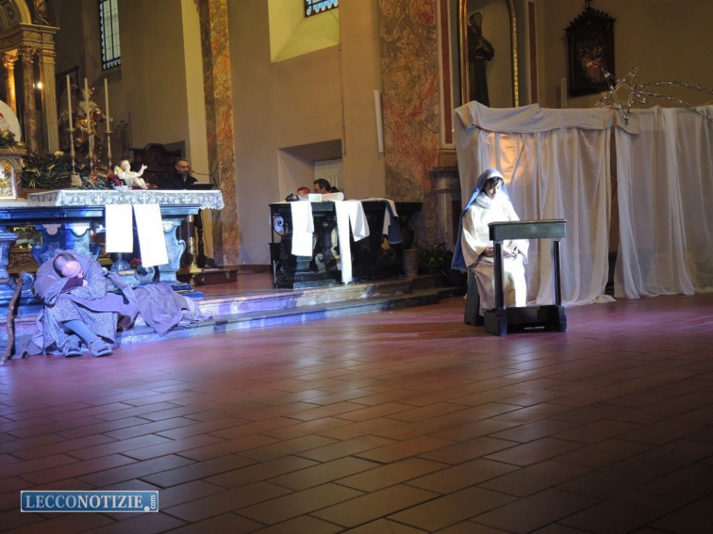 Un momento di unione e riflessione per coloro che partecipano alla vita parrocchiale del rione di Pescarenico, proprio alla fine del periodo natalizio. In circa 30 persone tra adulti e bambini nel pomeriggio di oggi, giorno dell’Epifania, hanno così portato in scena nella Chiesa di Pescarenico in Piazza Fra Cristoforo gli episodi salienti che costituiscono la festività del Natale, dall’Annunciazione, al viaggio di Maria e Giuseppe, all’arrivo dei tre Magi alla culla di Gesù bambino appena nato.