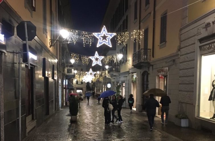 LECCO – Installate nei giorni scorsi lungo le principali vie del centro storico, venerdì pomeriggio a Lecco si sono accese le tradizionali luminarie natalizie.