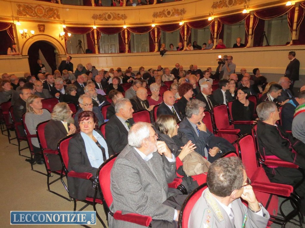 LECCO – La città di Lecco, in un teatro della Società colmo, sabato sera ha consegnato i San Nicolò d’oro. Quattro i benemeriti ai quali il sindaco di Lecco Virginio Brivio ha consegnato le medaglie: Aldo Paramatti alla memoria (premio ritirato dal figlio Umberto), Massimo Trifirò, Mariangela Tentori e Nicola Golinelli.