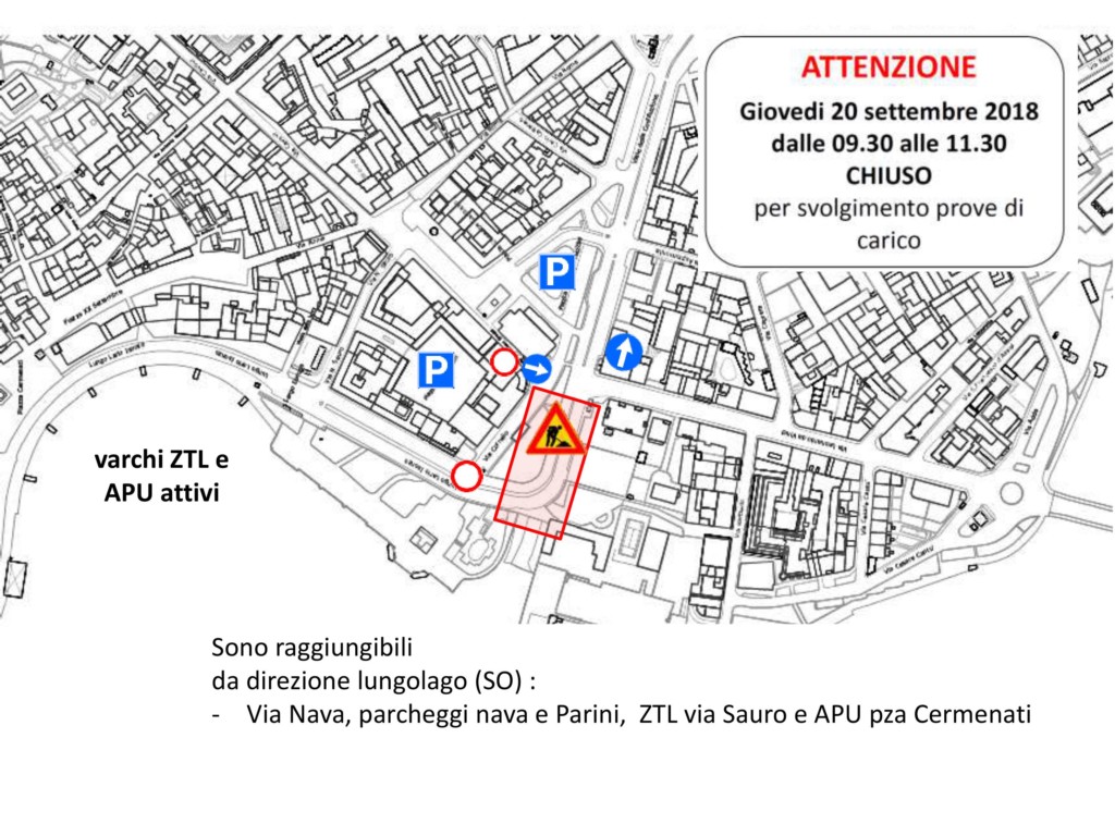 Per consentire i controlli è prevista la chiusura al traffico dalle 9.30 alle 11.30 nel tratto di lungolago compreso tra via Leonardo Da Vinci e via Nazario Sauro e dalle 14.30 alle 16.30 nel tratto compreso tra piazza Stoppani e via Malpensata.