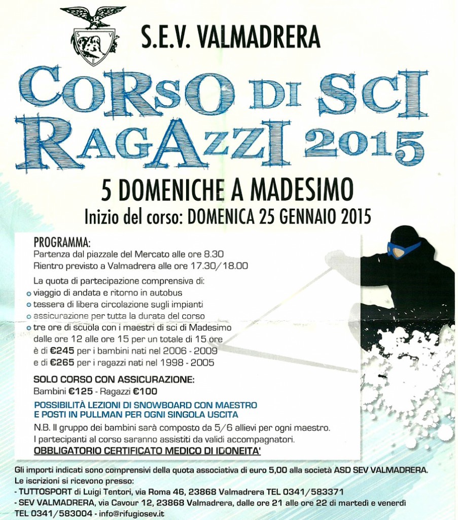 AttualitàNotizie breviSportValmadrerese Corso di sci per ragazzi a madesimo organizzati dal SEV Di Andrea Brivio - 21/01/2015 Facebook Twitter WhatsApp Linkedin Email Telegram Tempo di lettura: < 1 minuti VALMADRERA – La locandina del corso da sci organizzato dal SEV di Valmadrera: