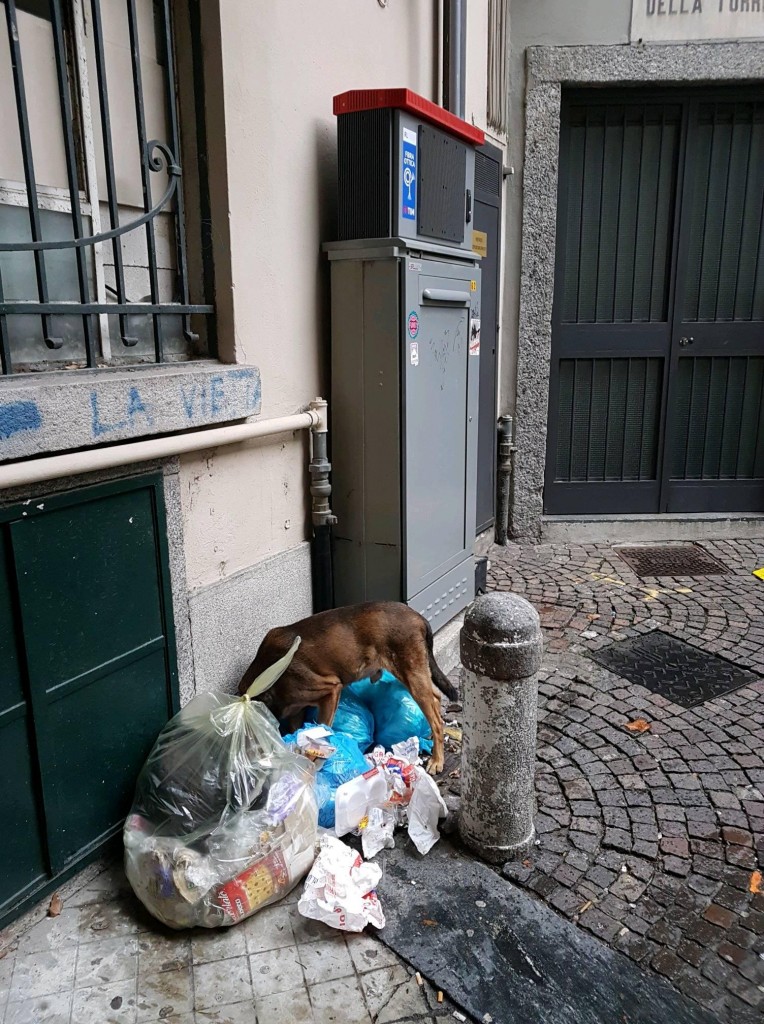 LECCO – Ci scrive un lettore inviandoci tanto di foto dal vicolo della Torre, una delle strade pedonali del centro, che collega Piazza XX Settembre al lungolago. Titolo della foto: “Cane che mangia immondizia nel vicolo della torre”.