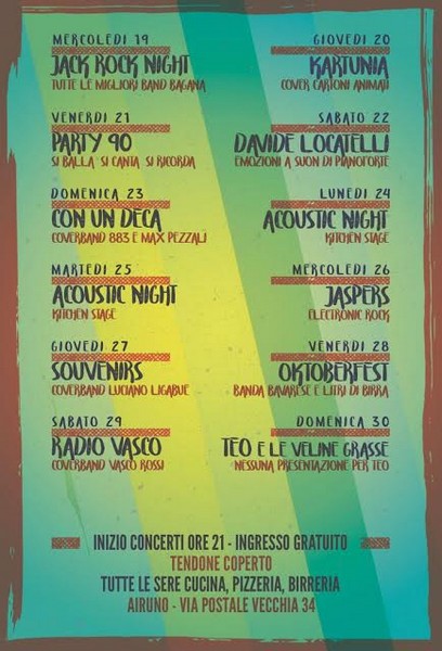 consacrandola definitivamente e conferendole quel pizzico di innovazione ed energia, pur mantenendo la sua storia e la tradizione. Il sodalizio ha portato sul palco airunese, oltre ai più grandi tributi della zona, artisti di fama locale e nazionale come Punkreas, Vallanzaska, Matrioska, Rumatera, Peter Punk, la Machete crew, Claudio “Gallo” Golinelli e molti altri. A fianco dei big l’organizzazione ha sempre tenuto in considerazione gli show delle giovani bands locali emergenti.