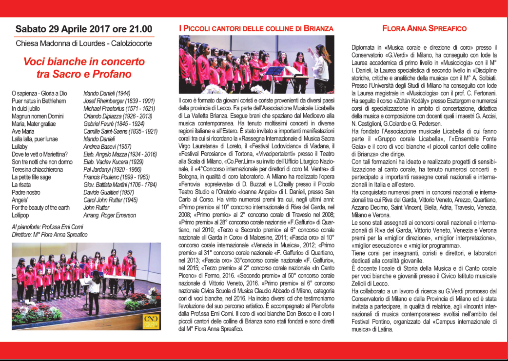 Presso la chiesa Madonna di Lourdes, nella serata di sabato, si esibirà il coro di voci bianche, in un concerto fra sacro e profano.