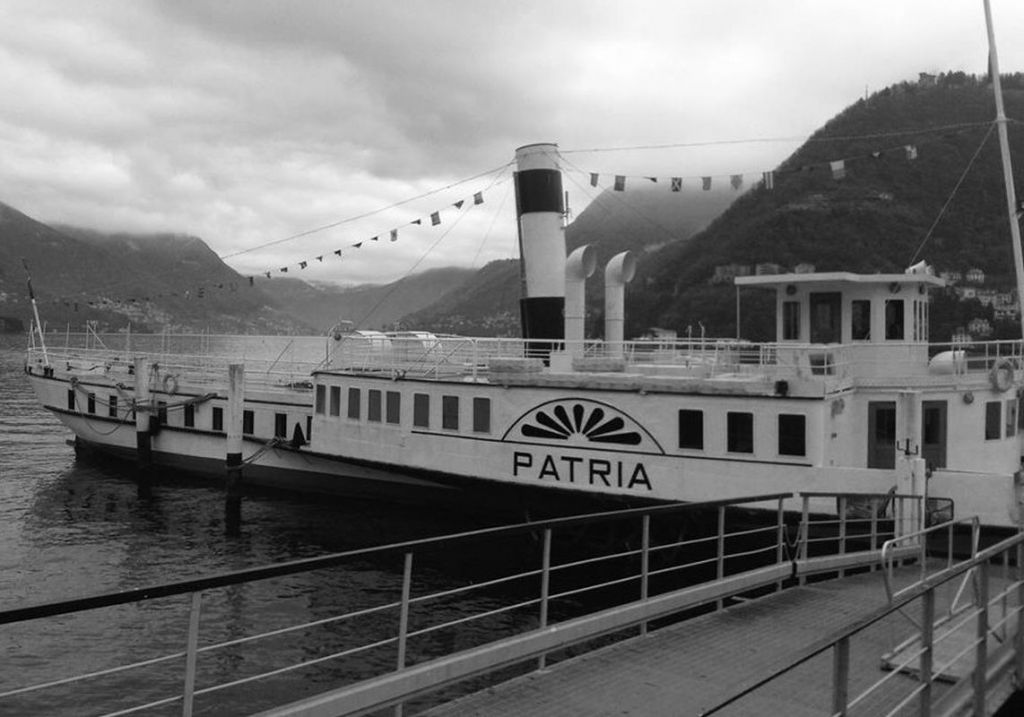Al piroscafo viene dato inizialmente il nome di “Savoia” e viene impostato il 7 giugno 1926 dalle maestranze del cantiere Odero di Sestri (GE) a Dervio. Allestito con eccezionale rapidità, viene varato trionfalmente il 31 luglio 1926, alla presenza di una grande folla e di molte autorità. Il “Savoia” è il primo piroscafo a scendere in acqua a Dervio presso il cantiere della Società Lariana, una compagnia di navigazione sul lago costituita a Como nel 1843. Il cantiere di Dervio viene appositamente creato per la costruzione di piroscafi a vapore. Subito dopo il suo varo, nel cantiere di Dervio viene impostato il suo gemello “28 Ottobre”. In virtù della loro grande capacità, della loro velocità e della loro modernità, il “Savoia” e il “28 Ottobre” vengono destinati ai servizi principali tra il capoluogo e l’alto lago, in particolare nei mesi estivi. Questi due natanti si possono considerare gli ultimi due grandi piroscafi italiani, varati in un’epoca in cui ormai il diesel si era saldamente affermato nel campo della navigazione interna, il piroscafo è dotato del sistema di distribuzione della macchina di tipo “Caprotti”, che dà risultati lusinghieri ed è a tutt’oggi l’unico esempio al mondo. Il 28 maggio 1927 il “Savoia” ha l’onore di ospitare a bordo il Re d’Italia Vittorio Emanuele III. In seguito alla caduta del regime fascista, il 25 luglio 1943 il nome del piroscafo viene cambiato in “Patria”. Contestualmente il gemello “28 Ottobre” viene ribattezzato “Concordia”. Nel tardo autunno del 1944, per salvaguardarlo dagli attacchi aerei angloamericani, viene ormeggiato nel canale dell’isola Comacina, mimetizzato con vegetazione fittizia e reti mimetiche. Nel 1945 ritorna in servizio, dopo che l’autunno è trascorso senza attacchi aerei. Il 10 gennaio 1945 viene però attaccato mentre è in navigazione, con un bilancio di 6 vittime e 17 feriti. L’estate 1990 è l’ultima che vede il “Patria” in servizio. Nel 1994 il “Patria” viene portato a Dervio, e solo dopo la mobilitazione di tanti viene acquistato dalla Provincia di Como e sottoposto a lunghi lavori di restauro. L’8 maggio 2013 il “Patria” completamente restaurato torna a fare un giro sul lago.
