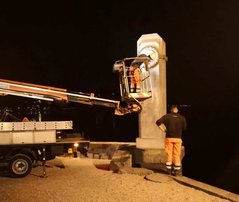 Due di questi sono stati collocati sui due pali della pubblica illuminazione siti lungo la passeggiata a lago, ulteriori due punti luce hanno invece rimpiazzato i faretti siti sulle colonne in granito alla base della scalinata a lago, vetusti e poco prestanti. Intervenendo sulla sostituzione e non creando nuove strutture a sostegno dei globi luminosi sono stati evitati ulteriori onerosi interventi comprensivi di eventuali opere edili.