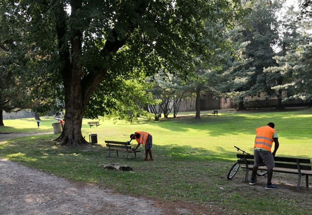LECCO – Continua il progetto che coinvolge i richiedenti asilo nelle attività di volontariato in favore della città: in queste settimane i migranti sono al lavoro nei parchi pubblici per ristabilire decoro agli arredi urbani, rimettendo a nuovo le panchine e facendo pulizia all’interno delle aree verdi cittadine.