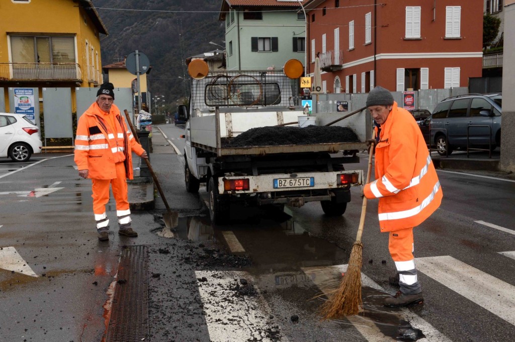 Dorio: buche sulla SP72, operai al lavoro per riparare la strada