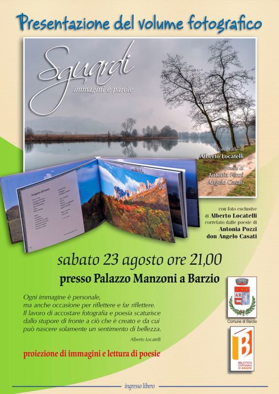 LECCO – Continuano le serate fotografiche di Alberto Locatelli. Due gli appuntamenti di fine estate: sabato 23 agosto alle ore 21.00, presso Palazzo Manzoni a Barzio, ci sarà la presentazione del volume fotografico “Sguardi – Immagini e parole”, un volume che accosta scatti inediti alle poesie di Antonia Pozzi e don Angelo Casati.