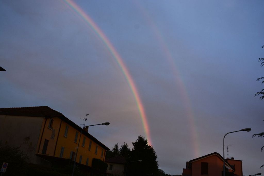 Il raro fenomeno, dovuto a particolari condizioni meteo, si è manifestato intorno alle 20.30 di mercoledì con uno dei due archi colorati più definito e l’altro meno marcato e con i colori inversi rispetto al primo.