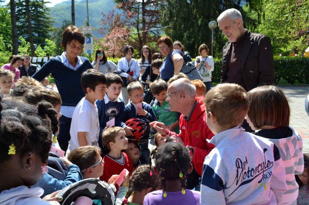Dopo gli alunni degli asili di Olcio, Somana, Santa Giovanna Antida, Crebbio e via Monastero, è toccato a 26 bambine e bambini della materna di Molina raggiungere piazza Mercato e da lì – guidati dagli agenti di polizia locale Linda Cassinelli e Nicola Airò – salire sulla loro biciclettine, indossare i caschetti donati loro dall’amministrazione comunale e quindi percorrere le strade del lungolago, sotto lo sguardo attento dei volontari del Soccorso degli alpini, fino a raggiungere l’Imbarcadero per poi fare ritorno ai giardini pubblici, percorrere un altro tratto di strada e concludere la minipedalata sempre in piazza Mercato.