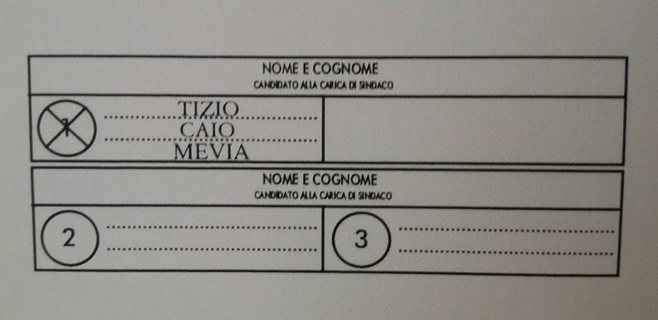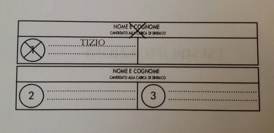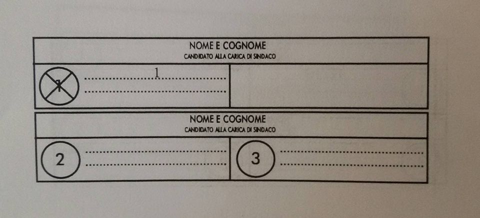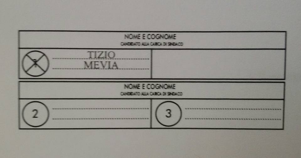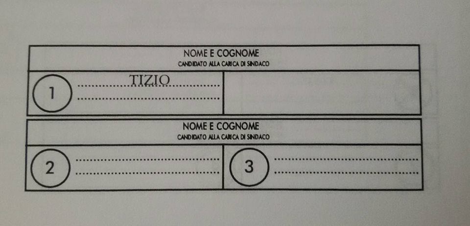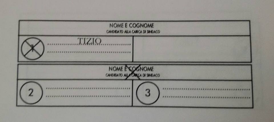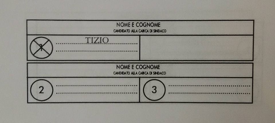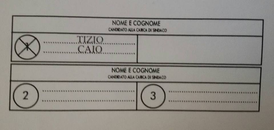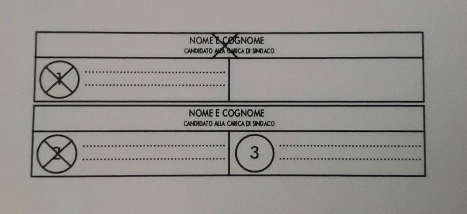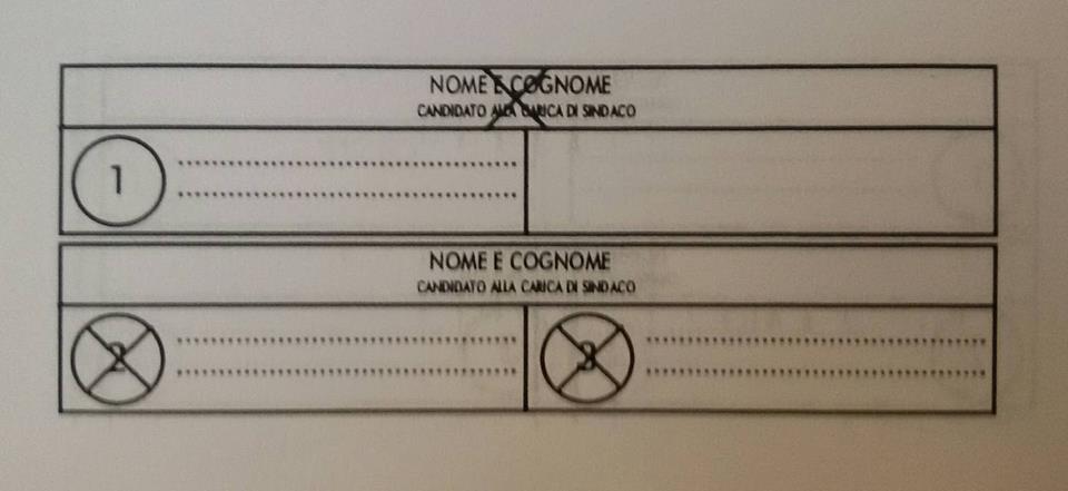 – se viene apposta una croce direttamente sul nome del candidato sindaco: il voto va solo al candidato sindaco collegato con la lista 1