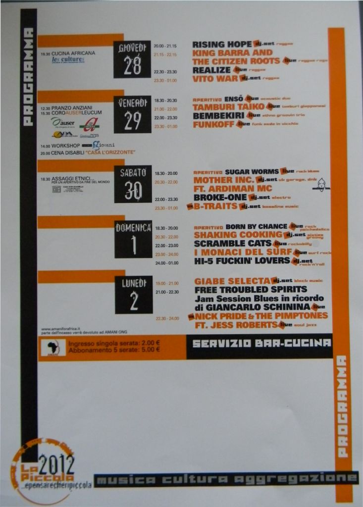 Non solo un festival ma anche un laboratorio di idee, con una programmazione musicale di alta qualità e molto spazio per le attività delle associazioni di volontariato e cooperative sociali che operano nella provincia di Lecco; il festival, organizzato dall’associazione Epensarecheeripiccola e patrocinato dal Comune di Lecco, chiude il programma di “Sere d’Estate 2012” e si pone come obiettivo quello di dare spazio a musica, cultura e aggregazione, arte e volontariato al centro della città.
