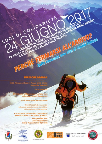 ERVE – Una camminata in notturna con partenza da Erve e salita al monte Magnodeno in ricordo dell’alpinista Mario Merelli e a sostegno del Kalika Family Hospital, questa la seconda tappa di “Luci di solidarietà” in programma nella serata del 24 giugno.