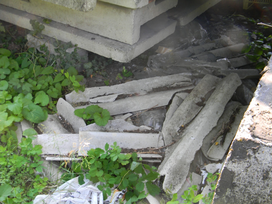 I plinti in cemento abbandonati chissà da quanto non fanno di certo bella mostra in prossimità dell’ospedale Manzoni di Lecco, posti lungo via Filanda che si stacca dalla rotonda del tunnel e che corre lungo il torrente Bione. Ad aggravare la situazione del piccolo angolo esteticamente censurabile, la presenza di eternit (così sembra a colpo d’occhio, lasciamo agli esperti la conferma definitiva), nascosto proprio dai plinti e con un pezzo di modeste dimensioni finito in prossimità del letto del torrente.