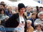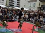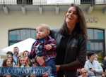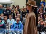 Poi è stata la volta delle donne, alcune di loro mamme dei piccoli modelli che le hanno precedute nella sfilata. Poi l’abbigliamento uomo, con altrettanti papà e altri giovani prestati per un giorno al mondo della moda. Madrina d’eccezione Simona Gualtieri, modella e velina spagnola.