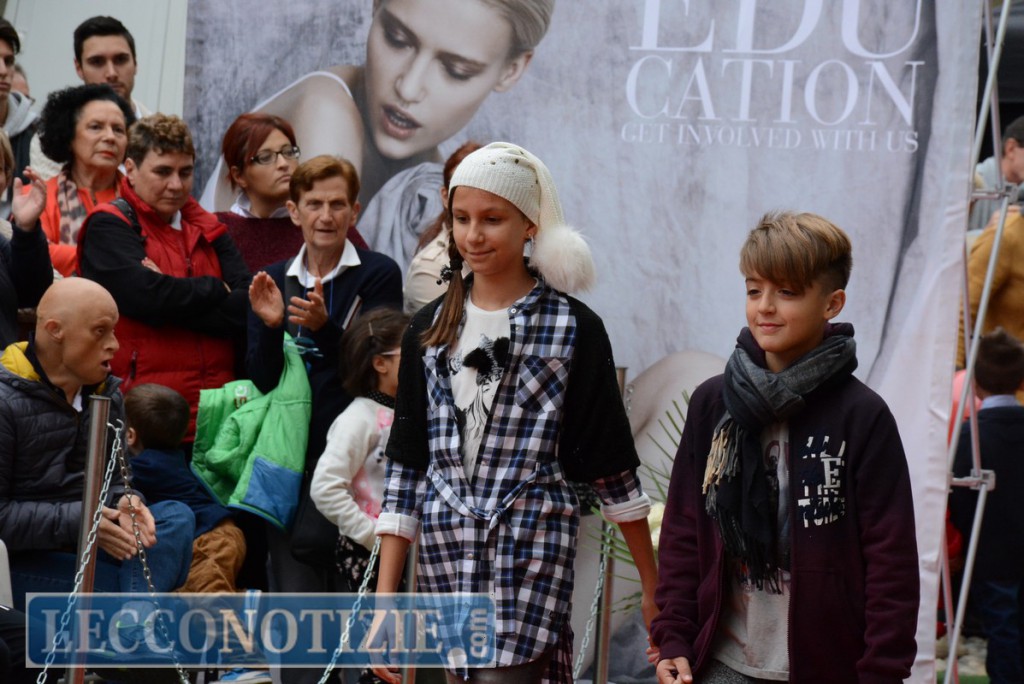 A calcare per primi la passerella, con tutta la loro simpatia e timidezza, sono stati i bimbi vestiti con abiti Brums, che hanno saputo strappare tanti sorrisi al numeroso pubblico accorso per la manifestazione.