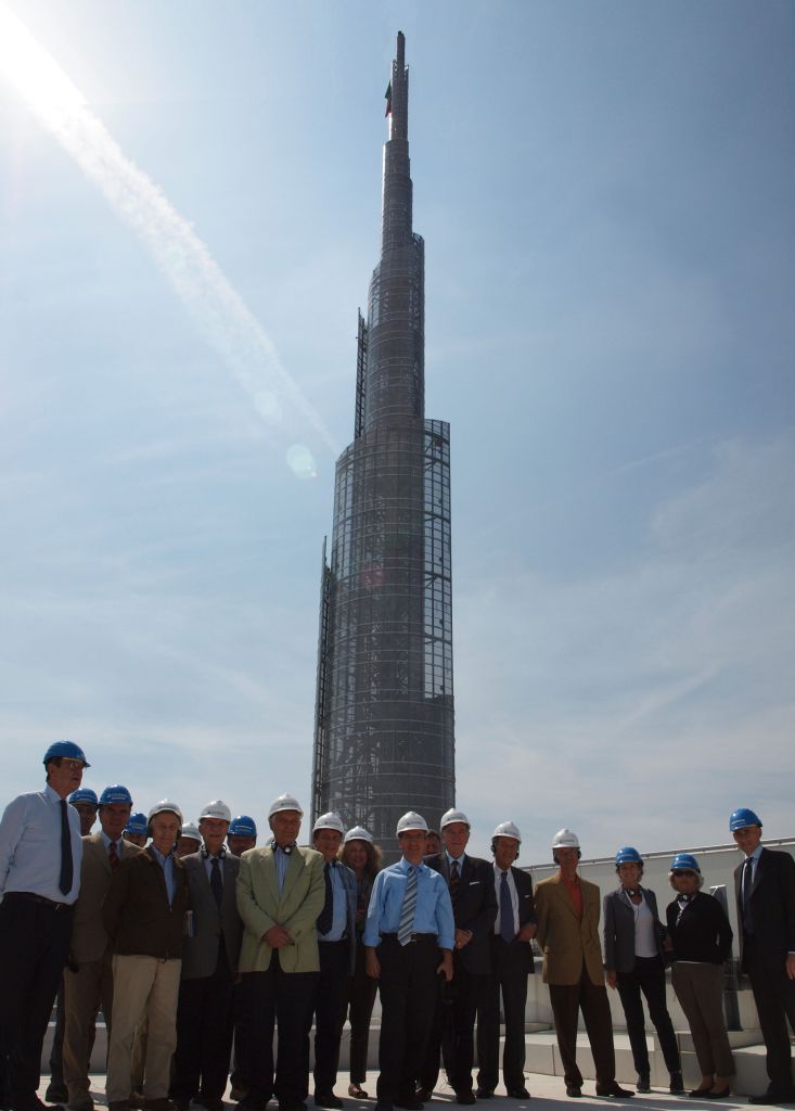 L’amministratore delegato della Colombo Costruzioni Spa, architetto Luigi Colombo, insieme ai suoi tecnici e dirigenti ha accompagnato la delegazione alla visita del cantiere e, in particolare, della torre di 32 piani che, con i suoi 238,70 metri di altezza complessiva, rappresenta l’edificio più alto di Milano ed uno tra i più alti in Europa.