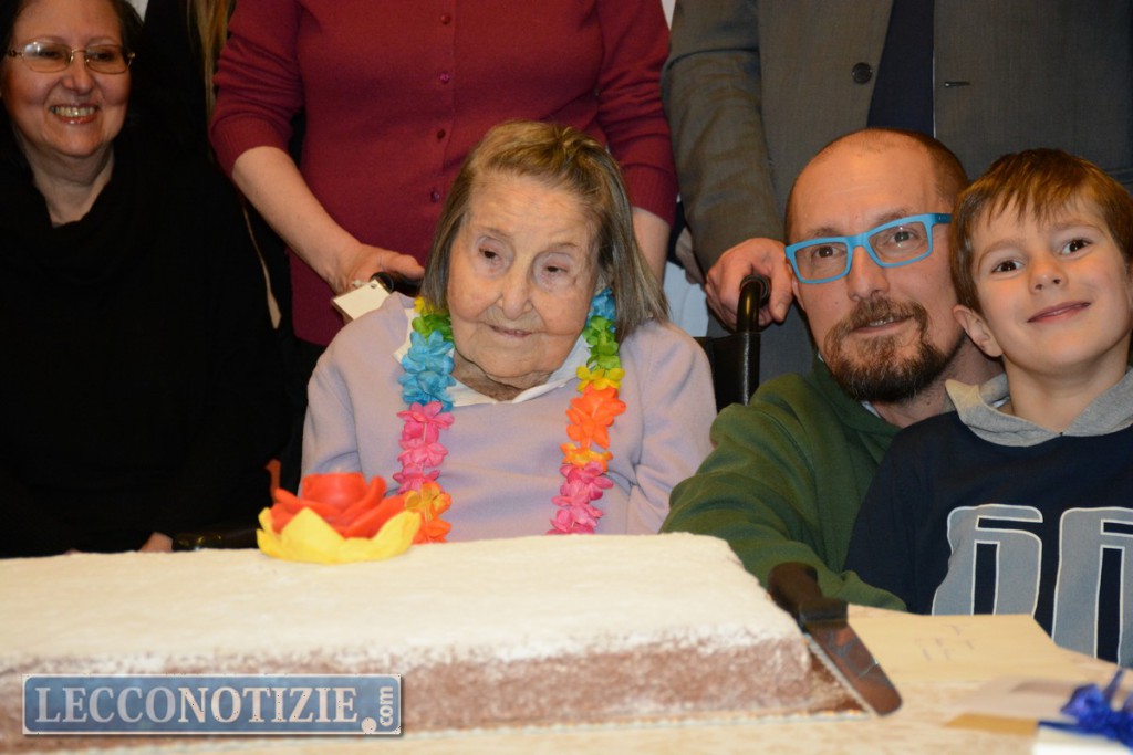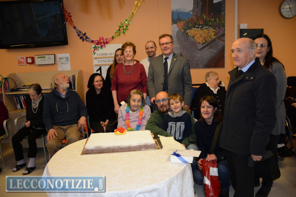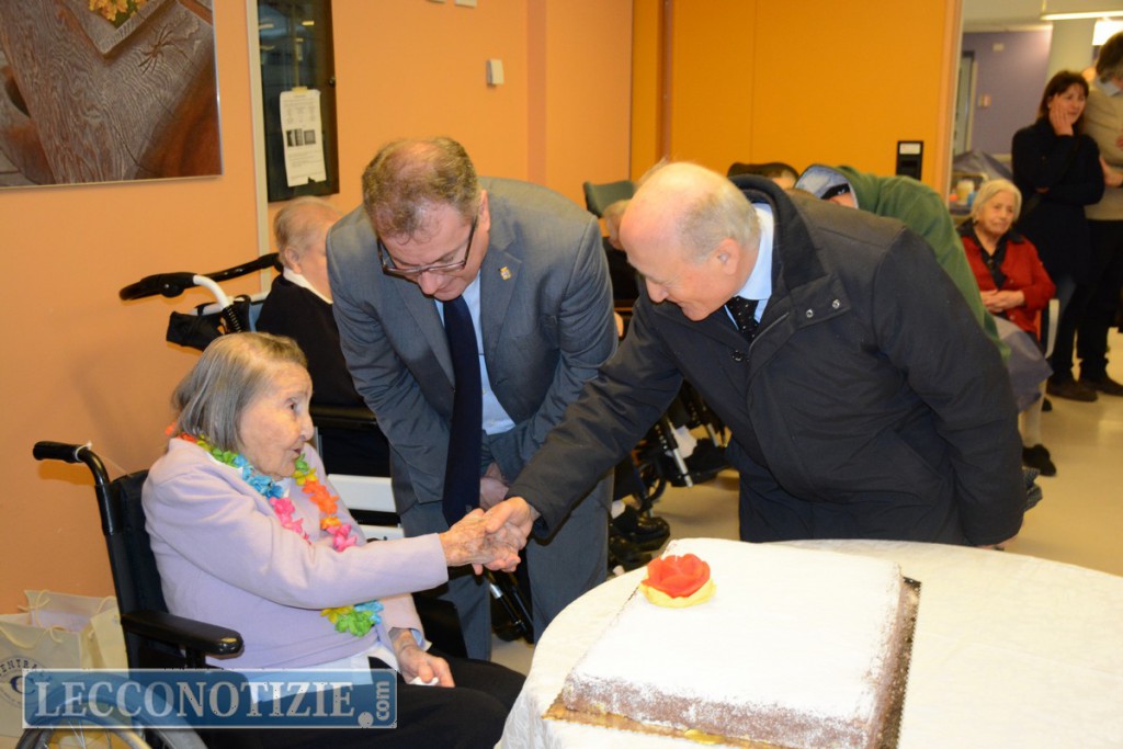 Anche il sindaco Virginio Brivio, venerdì mattina, ha voluto portare i suoi auguri all’anziana nonnina: “E’ bello festeggiare insieme questo importante traguardo . A Lecco risiedono 26 mila famiglie, sette mila di queste sono monocomponente, altre 8 mila sono composte da due persone; molti di loro sono anziani. E’ importante vivere questo periodo dell’età avanzata in compagnia. L’Airoldi e Muzzi ha un centro diurno e diversi progetti di assistenza, anche domiciliare. Crescono i bisogni della popolazione che invecchia nella nostra città, ma crescono anche i servizi affinché nessuno venga lasciato solo”.