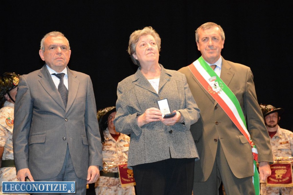 Infine, sono state conferite quattro onorificenze dell’Ordine al Merito della Repubblica Italiana: titolo di cavaliere per Angelo Gandolfi di Monte Marenzo, di cavaliere ufficiale per Liliana Antonini di Calolziocorte e per Germana Marini di Vercurago, infine quello di commendatore per il lecchese Domenico Colombo.
