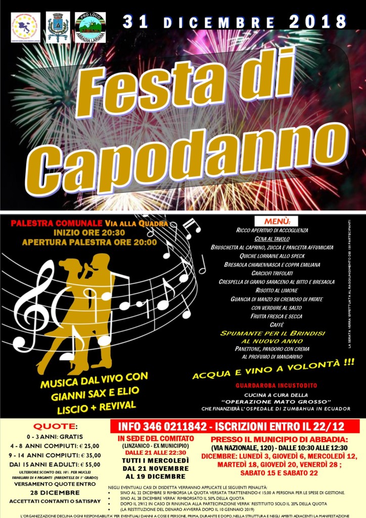 ABBADIA – Il Comitato Gemellaggi insieme al Comune di Abbadia Lariana e La Proloco di Abbadia hanno organizzato una speciale festa di Capodanno, a scopo benefico:
