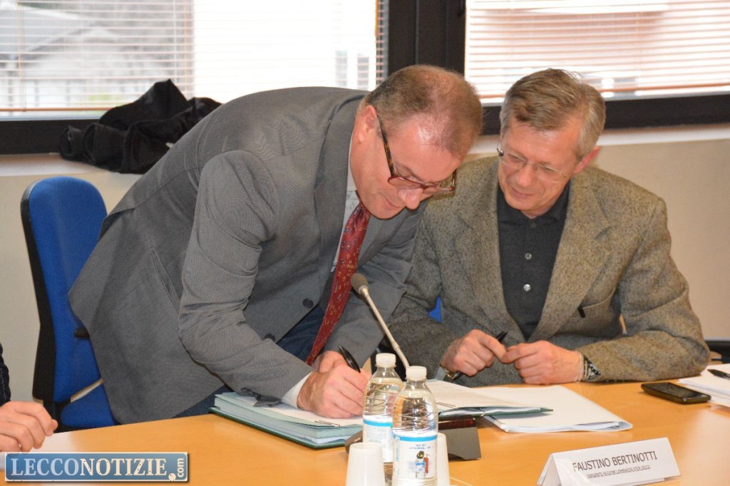 La firma del sindaco Brivio, accanto il vice presidente della Provincia Scaccabarozzi