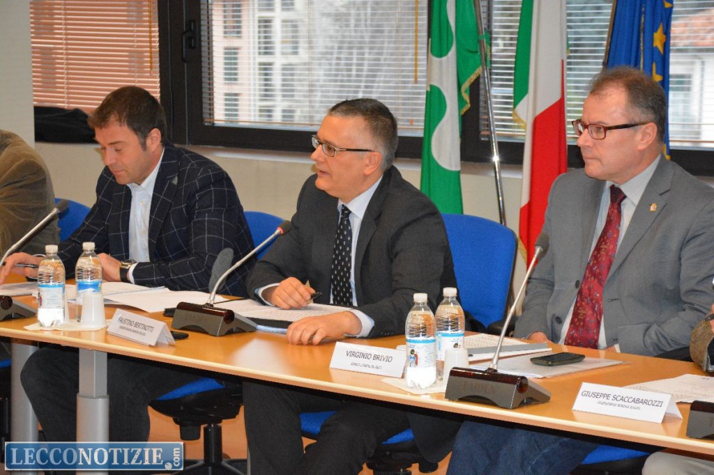 L’assessore Antonio Rossi, il presidente Ster Fausto Bertinotti, il sindaco Virginio Brivio