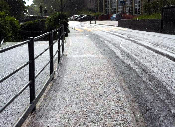 In pochi minuti strade, tetti e prati sono stati ricoperti da una moltidudine di chicchi bianchi di modeste dimensioni che hanno trasformato l’intero paesaggio facendolo apparire decisamente invernale come dopo una leggera nevicata. Fortunatamente la perturbazione che si è abbattuta nella zona non ha causato particolari danni. Le foto che testimoniano la singolare grandinata sono state gentilmente scattate da Roberta Todeschini in via Abate Longoni.