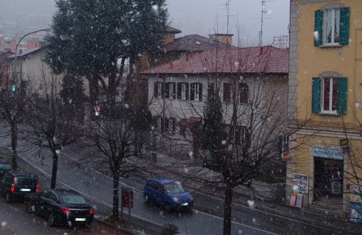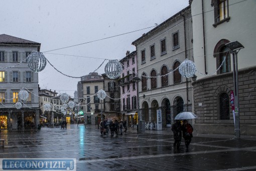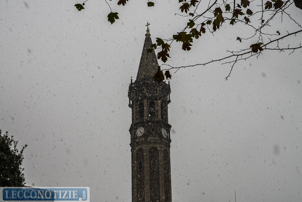 LECCO –Le previsioni hanno azzeccato in pieno. Il sole di venerdì mattina è stato coperto da Attila, la perturbazione che proviene dalla Groenlandia. E così, verso le 14, puntuale come un orologio svizzero, la neve è cominciata a scendere. Anche nel centro storico i fiocchi sono scesi per tutto il pomeriggio, ma senza attecchire al suolo; imbiancate invece le frazioni più alte della città ma, complessivamente, la neve non sembra aver provocato alcun disagio.