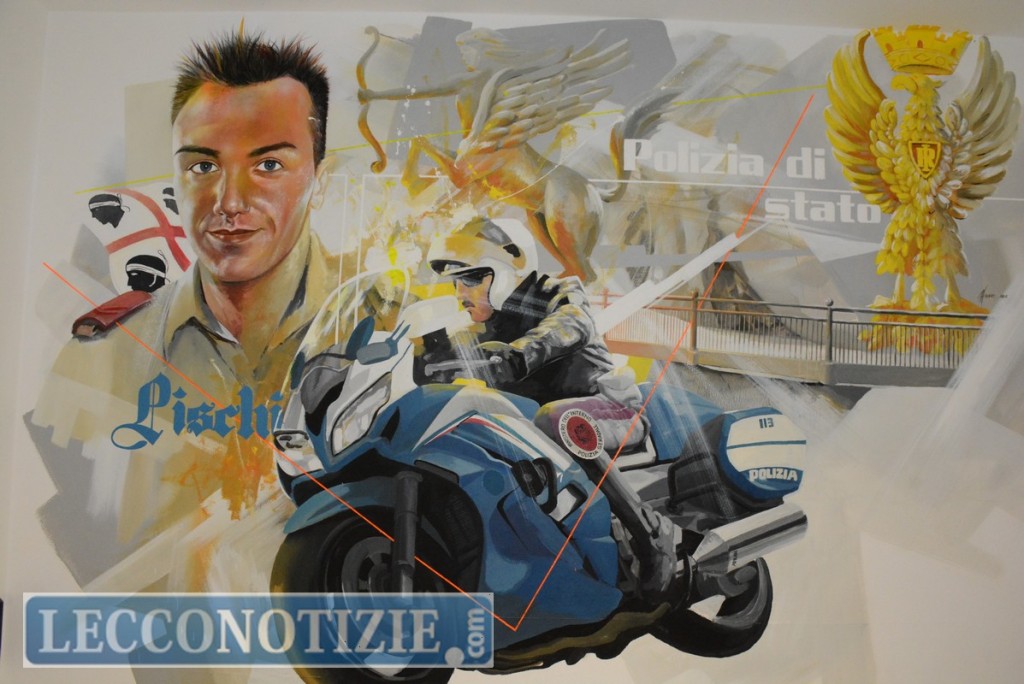 Valentina Pischedda, insieme al prefetto Gabrielli, ha rimosso il velo purpureo, svelando la targa riportante il nome del fratello, che da oggi capeggerà all’ingresso della sede della Polstrada di Bellano, “così come una casa accogliente, con un nome e un cognome”. Ma la memoria del giovane agente è impressa anche nel bellissima opera realizzata all’interno della caserma dall’artista Afran, presente anch’esso alla cerimonia insieme a don Agostino di Casa Don Guanella.