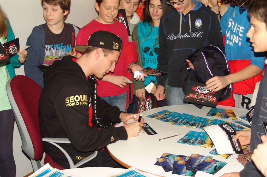 “Ho iniziato ad appassionarmi alla breakdance nel 2001 dopo avere visto un videoclip: da quel momento non mi sono più fermato – ha raccontato il campione nato a Mosca nel 1985 e trasferitosi in Italia nel 1993 – L’apice della mia carriera? Senza dubbio il titolo europeo. Per riuscire in quello che faccio serve una grande preparazione mentale e fisica. Mi alleno duramente e con costanza. Gli incontri con i ragazzi? Mi piacciono davvero molto, è bello parlare di traguardi da raggiungere e di sogni da inseguire”.