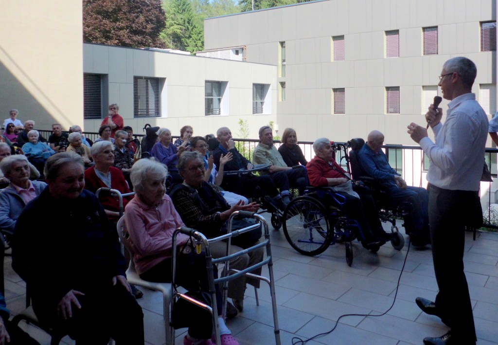 Una bella ora di canti, con il maestro Massimo Gilardoni che ha saputo coinvolgere tutti gli ospiti della struttura, più volte sollecitati ad accompagnare con il battito delle mani e con piccoli movimenti le esecuzioni proposte dal coro valsassinese.