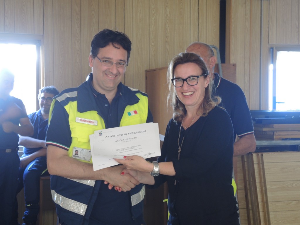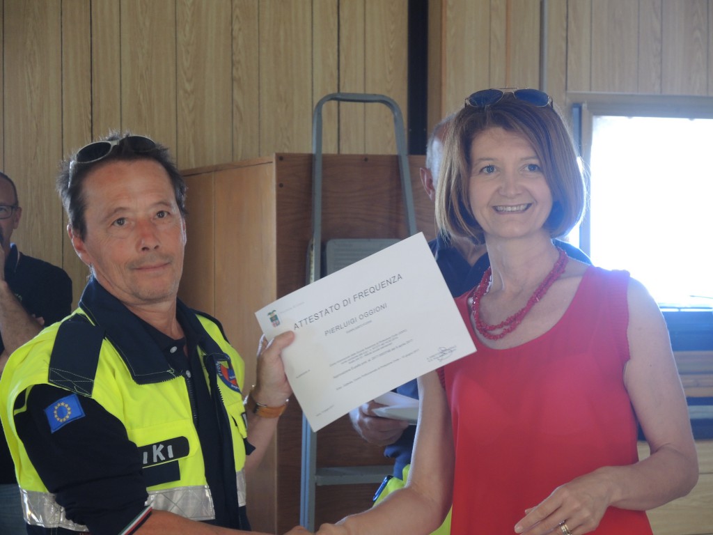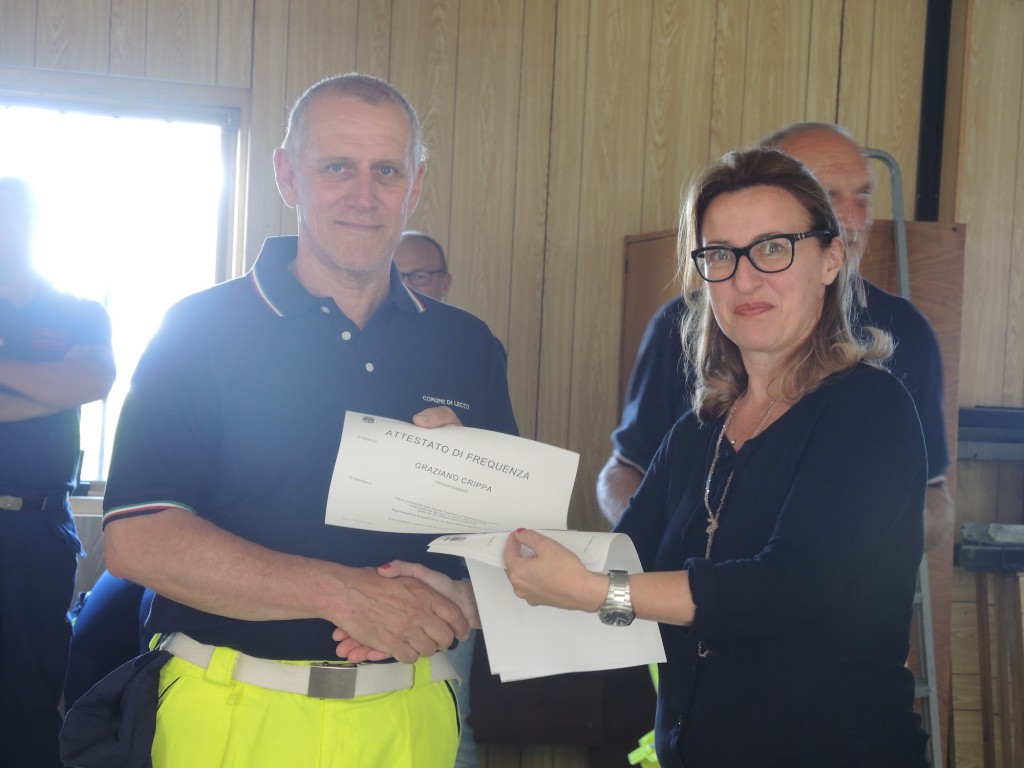 Alle 11 le autorità presenti hanno consegnato gli attestati di partecipazione al corso “La Protezione Civile incontra la scuola” che quest’anno ha visto impegnati una settantina di volontari: “La cosa bella – ha spiegato Alfonso Corti, Segretario CVV Lecco – è che a tenere il corso e a preparare i volontari ad andare nelle scuole per incontrare gli studenti e raccontare cosa fa la Protezione Civile sono stati altri volontari. Tra la primavera e l’autunno scorsa abbiamo formato 70 volontari in un percorso orientato alle scuole primarie. Il prossimo anno ci aspetta la sfida delle scuole secondarie”.