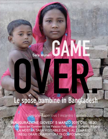 LECCO – E’ stata inaugurata giovedì 5 marzo la mostra fotografica “Game Over – Le spose bambine in Bangladesh” promossa dal Gruppo Terziario Donna di Confcommercio Lecco, insieme al Coe e alla Galleria Melesi in vista della Festa della Donna.