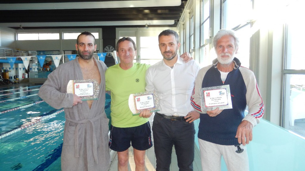 Alla fine della giornata del 25 aprile 2016 sono stati consegnati i seguenti riconoscimenti, al bambino più piccolo che ha partecipato , Tommaso Mariani, 4 anni di Premana; alla persona più anziana, Giacomo Rusconi, 70 anni di Lecco; alla società più numerosa, la Pratogrande con 24 atleti; Ferro Giuseppe di Bergamo classe 1984 che è stato 9 ore in vasca per un totale di 980 vasche pari a 24 km e mezzo , a Luisa Cocco di Galbiate per i 9 km percorsi, pari a 360 vasche. Da sottolineare l’impronta della competizione chi faceva 7 vasche e che ne faceva 980 vasche, chi usciva orgogliosamente diceva io ho fatto 5 km, ecc.