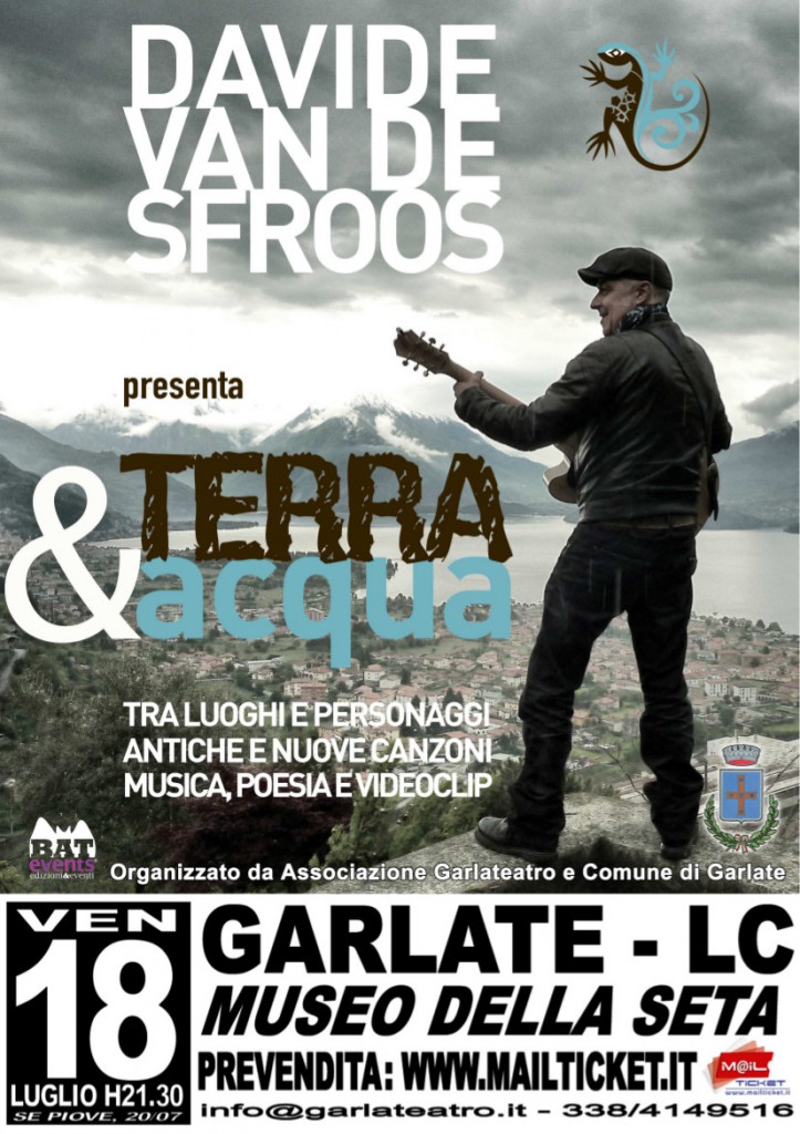 GARLATE – E’ ufficiale: Davide Van De Sfroos, il cantautore comasco approderà per la prima volta sul Lago di Garlate venerdì 18 luglio alle 21.30. Cornice dell’evento sarà il cortile interno dell’antica filanda Abegg che ospita il Civico Museo della seta recentemente riaperto al pubblico dopo lunghi lavori di restauro.