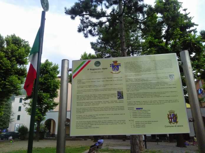 LECCO – Nel corso della mattinata di martedì la sezione di Lecco dell’Associazione Nazionale Alpini ha posto una targa/pannello commemorativo all’interno del giardino di piazza V Alpini a Germanedo.
